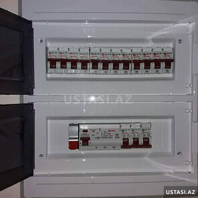 Həmçinin rozetkalar, elektrik panelləri, sayğaclar, kabellər, lampalar, paylayıcı qutular və digər elektrik avadanlıqlarının təmiri və dəyişdirilməsi.