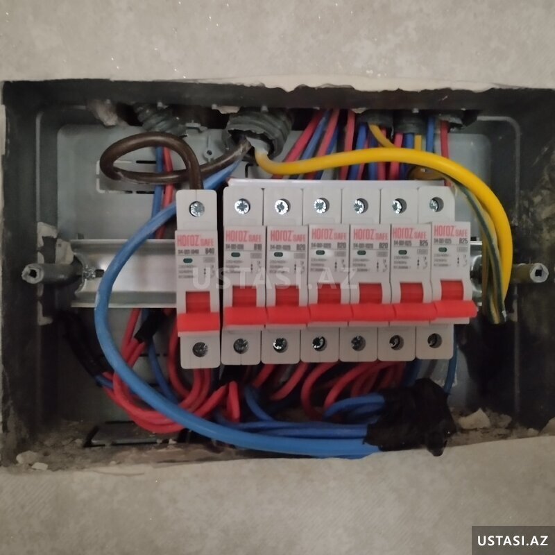 Həmçinin rozetkalar, elektrik panelləri, sayğaclar, kabellər, lampalar, paylayıcı qutular və digər elektrik avadanlıqlarının təmiri və dəyişdirilməsi.